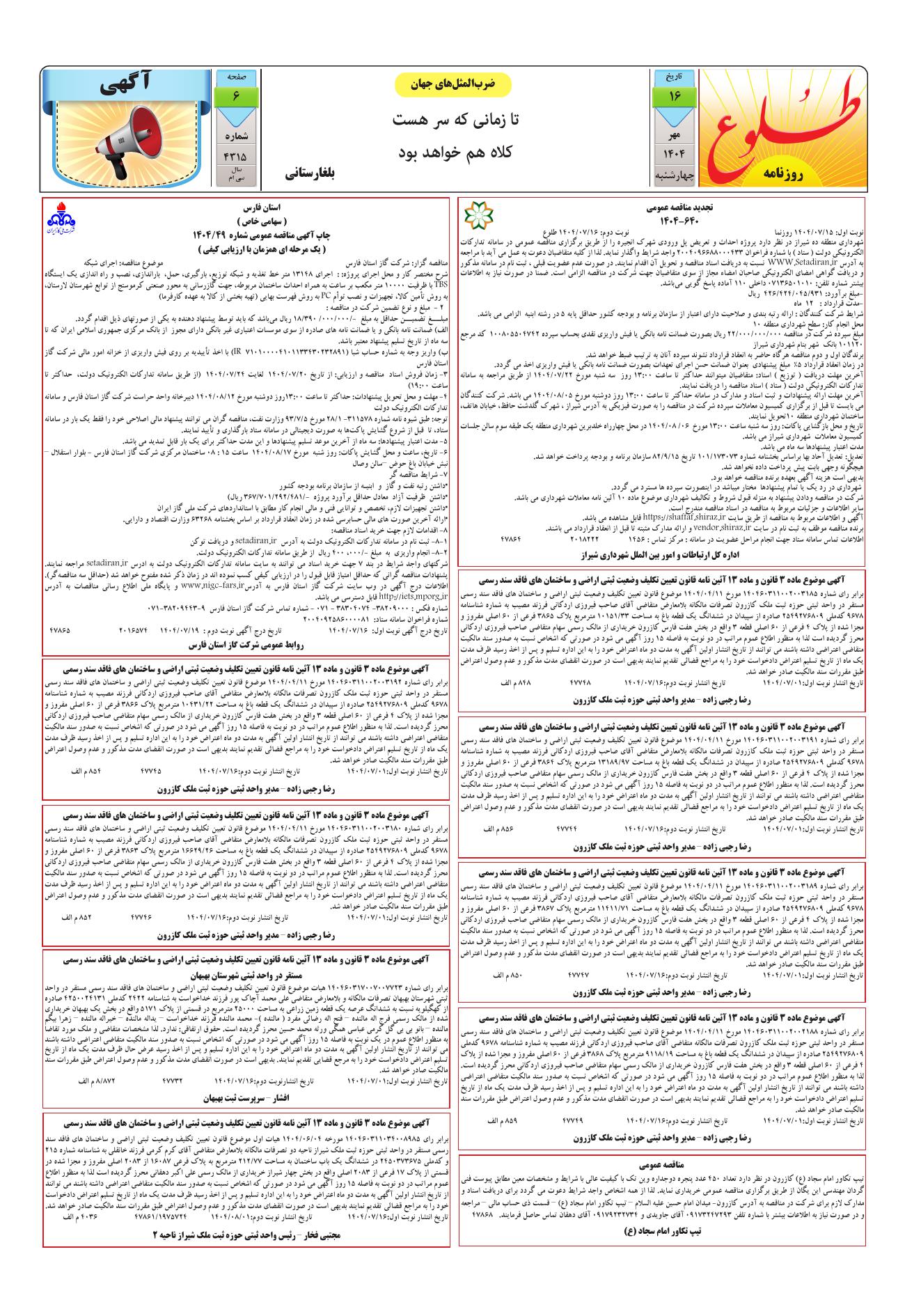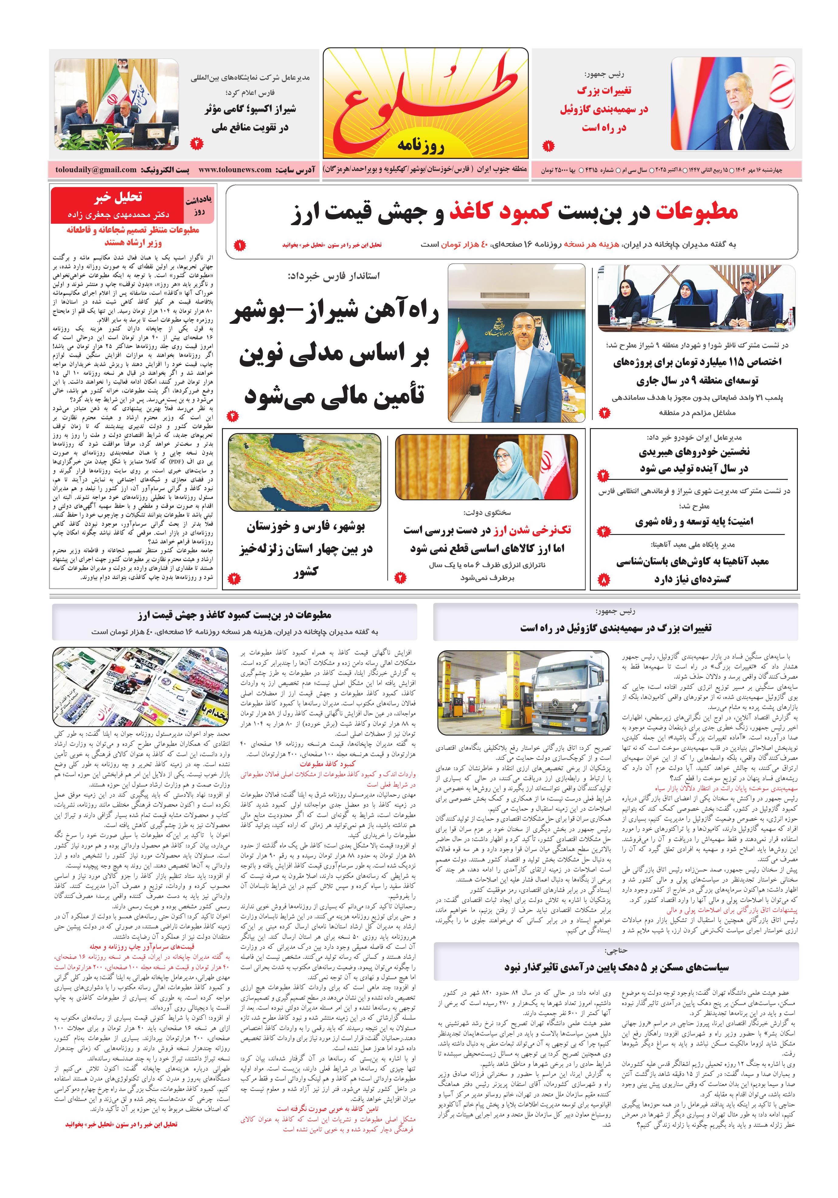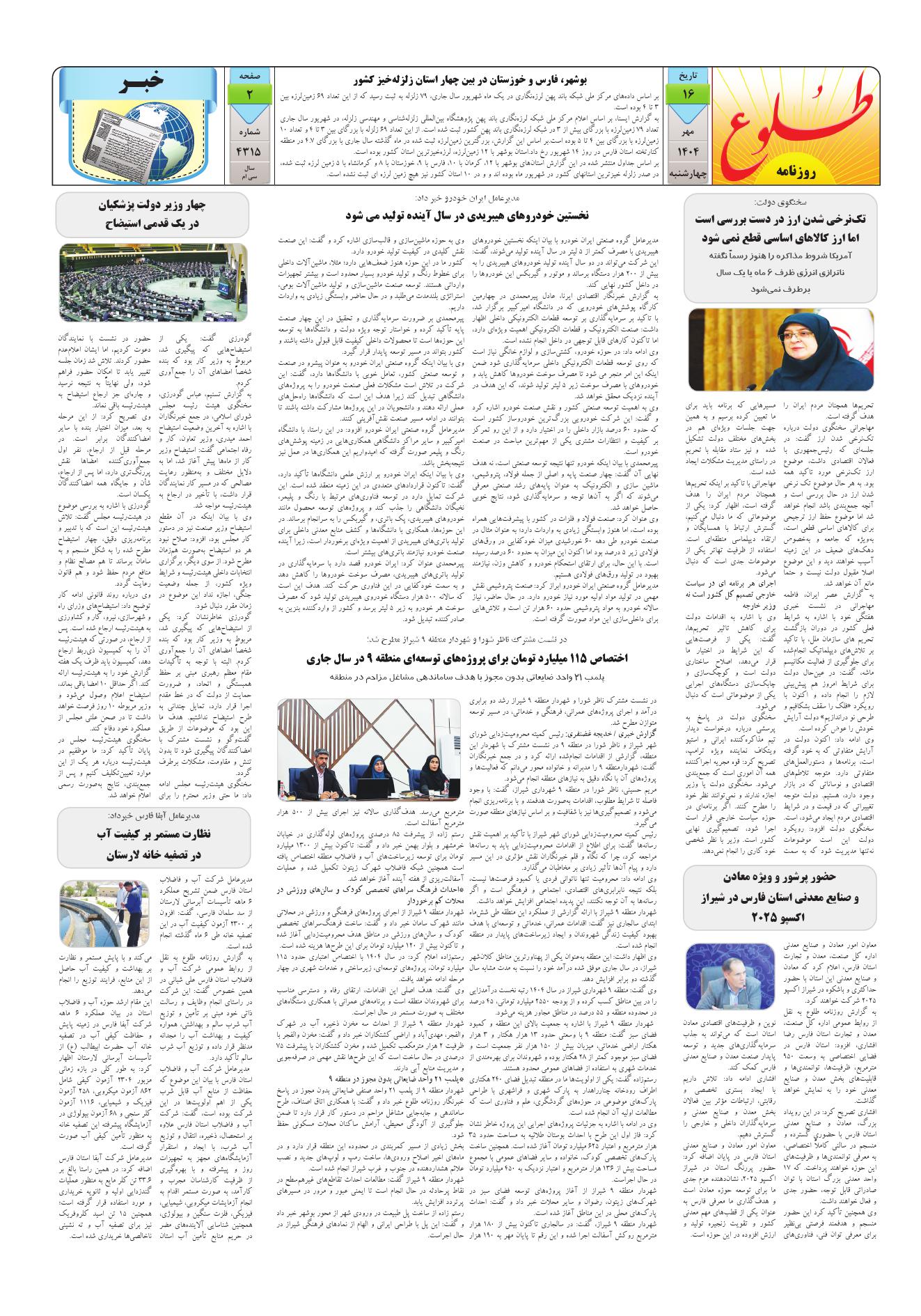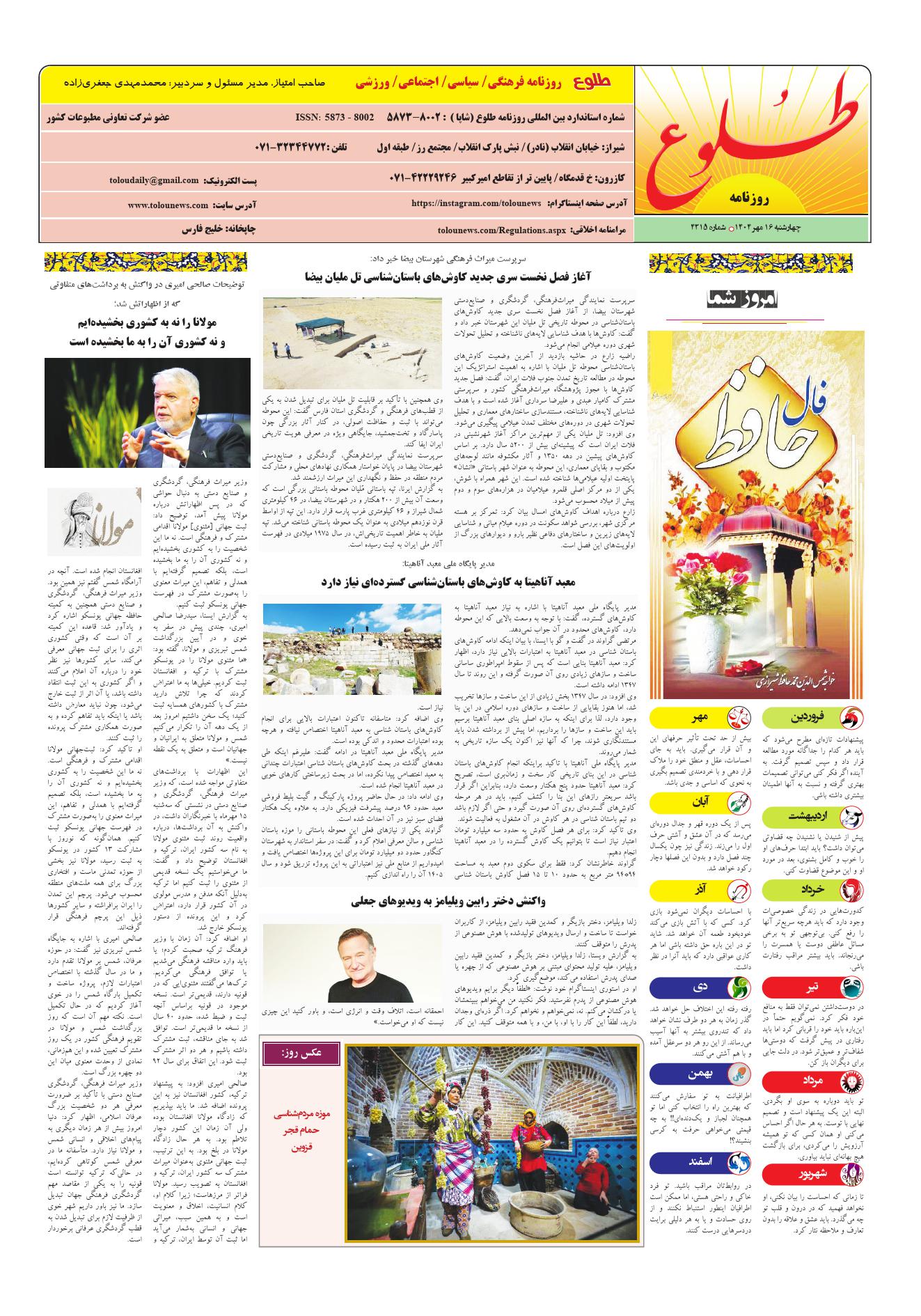 به وب سایت رسمی روزنامه طلوع خوش آمدید