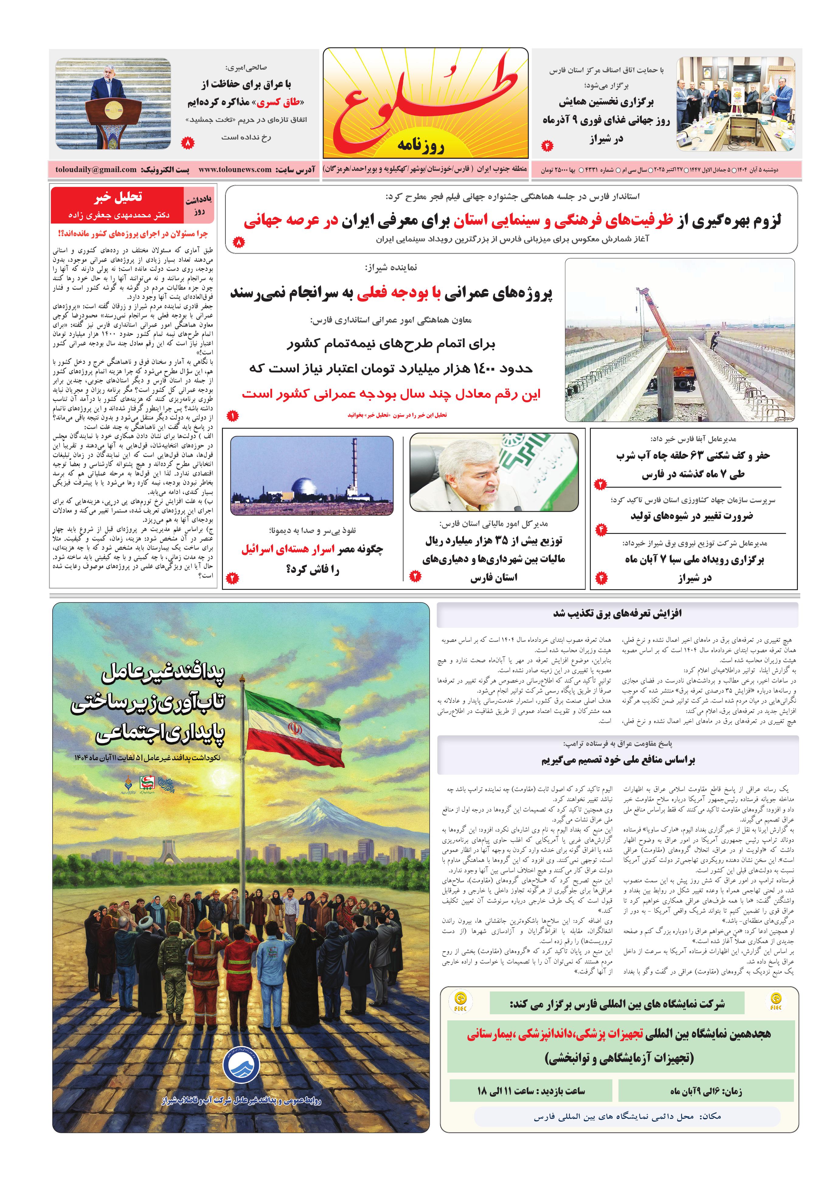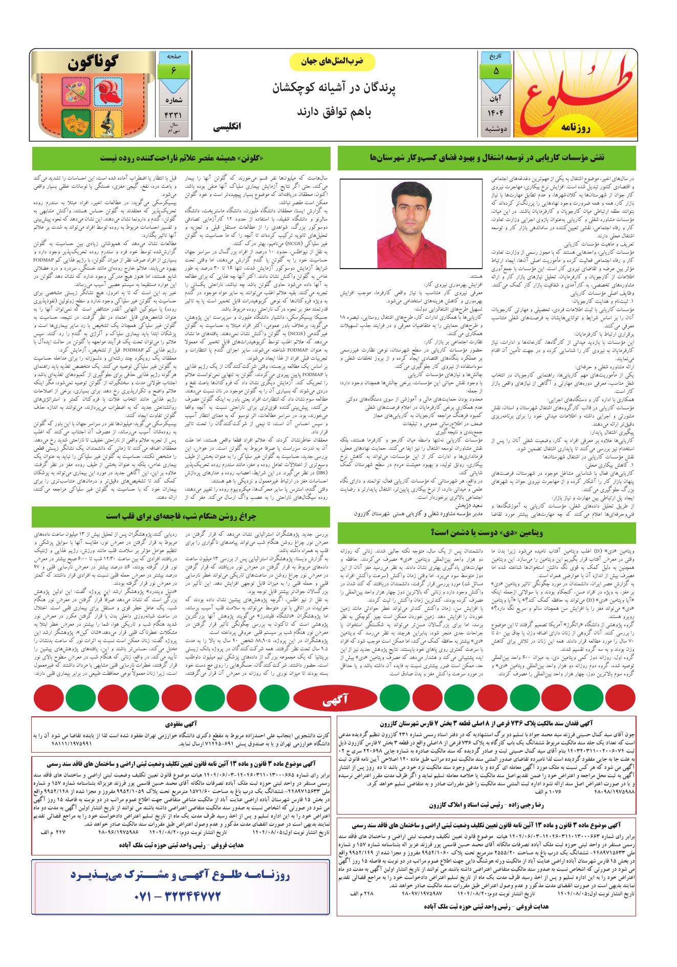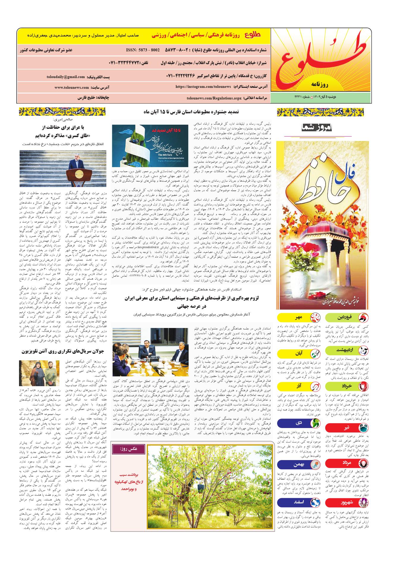 به وب سایت رسمی روزنامه طلوع خوش آمدید
