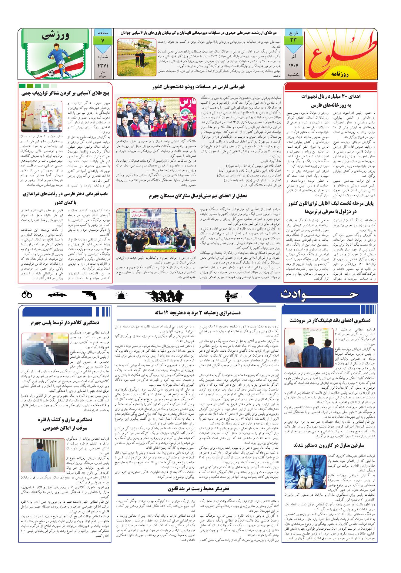 معاون فرهنگی شهردار شیراز از پیشرفت ۶ سالن ورزشی خانواده‌محور و آغاز اجرای آمفی‌تئاتر روباز ۵ هزار نفری در منطقه ۱۰ خبر داد و توسعه زیرساخت‌های فرهنگی و ورزشی را از مهم‌ترین اولویت‌های مدیریت شهری دانست.