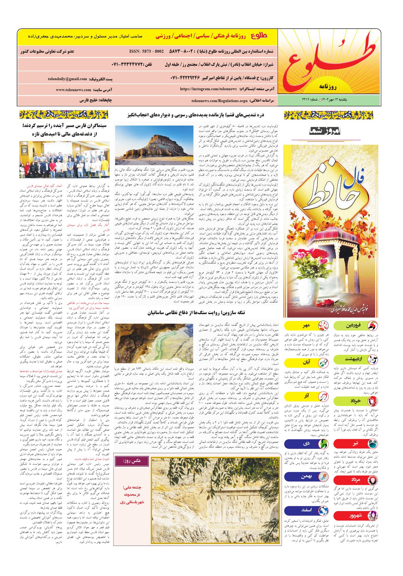 به وب سایت رسمی روزنامه طلوع خوش آمدید
