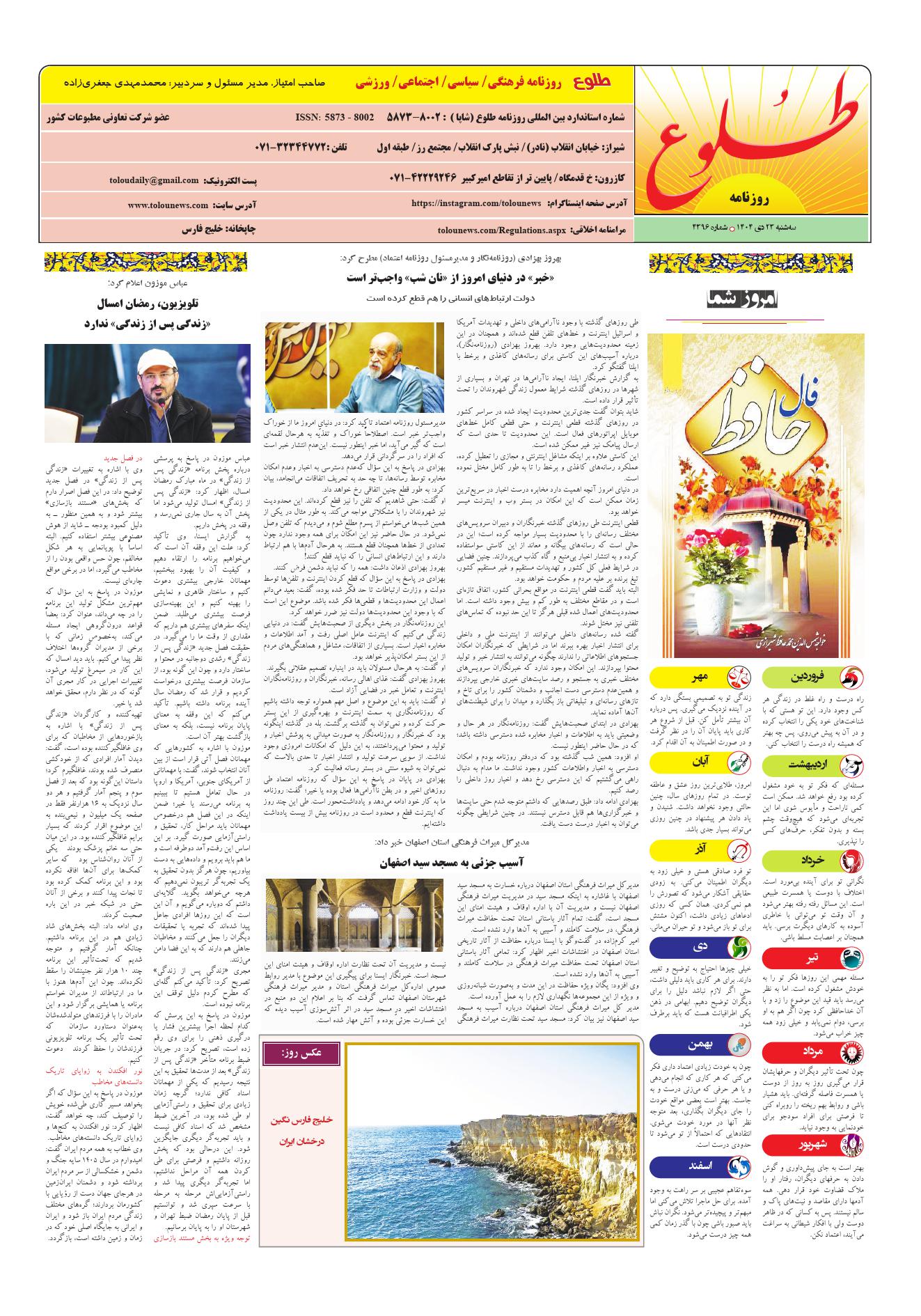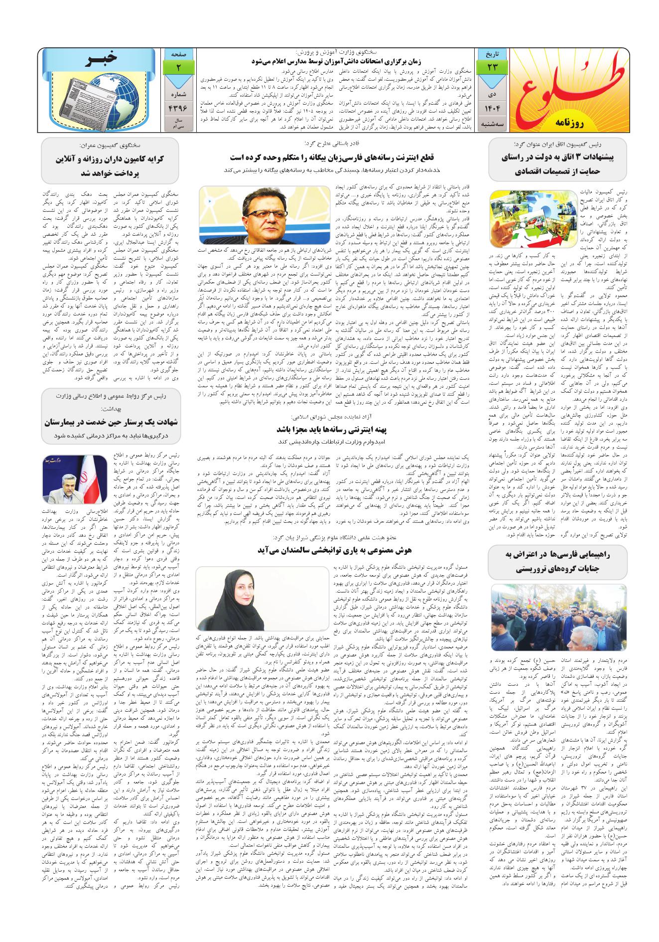 به وب سایت رسمی روزنامه طلوع خوش آمدید