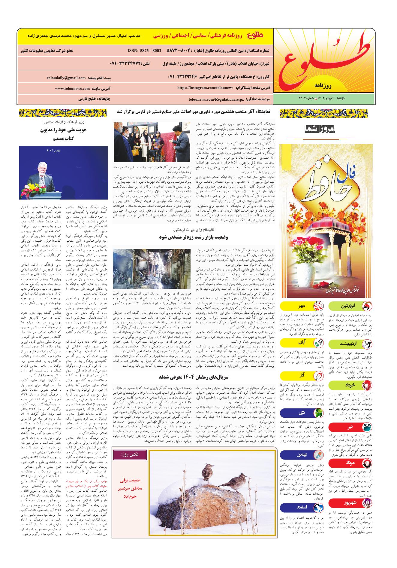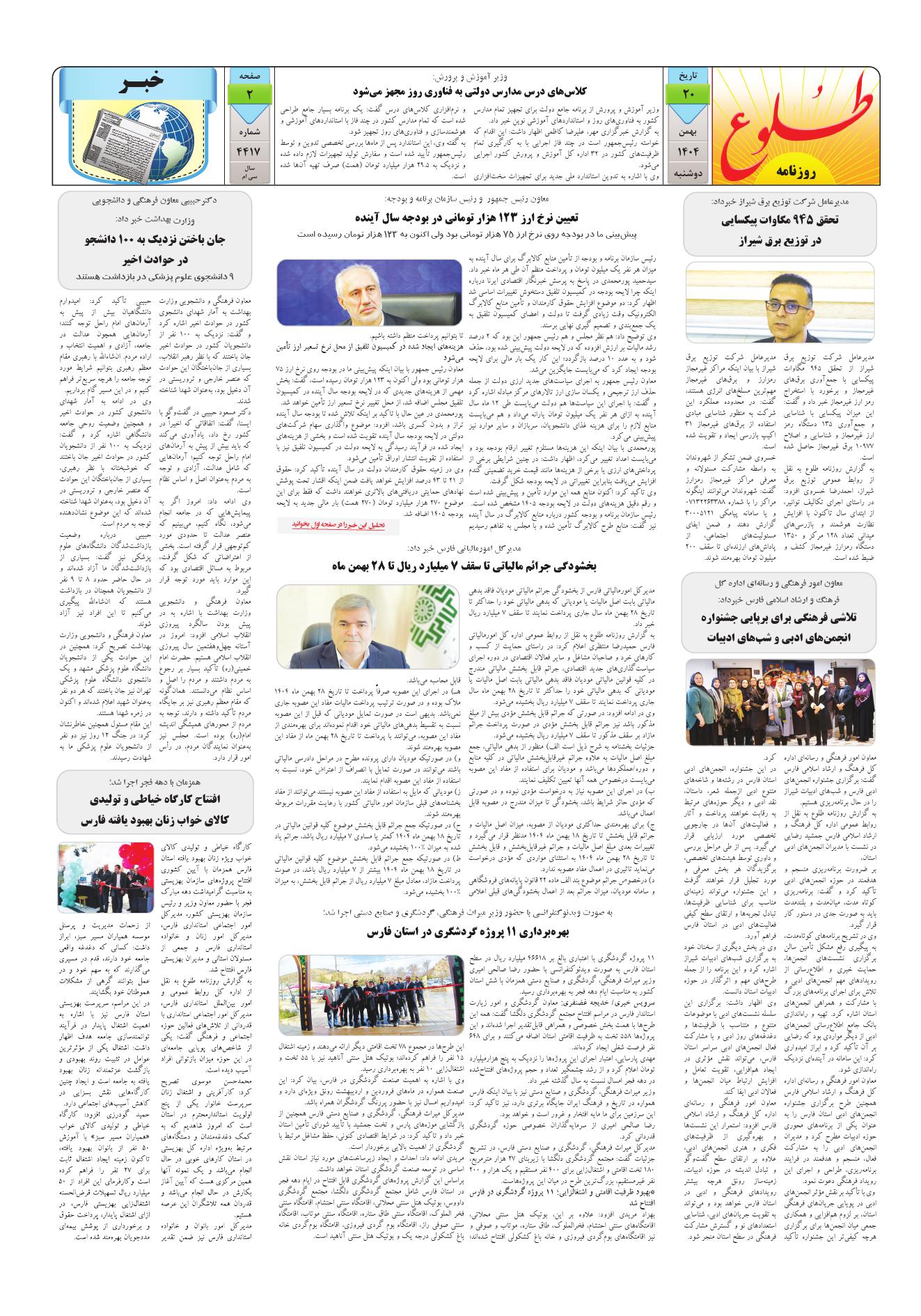 به وب سایت رسمی روزنامه طلوع خوش آمدید