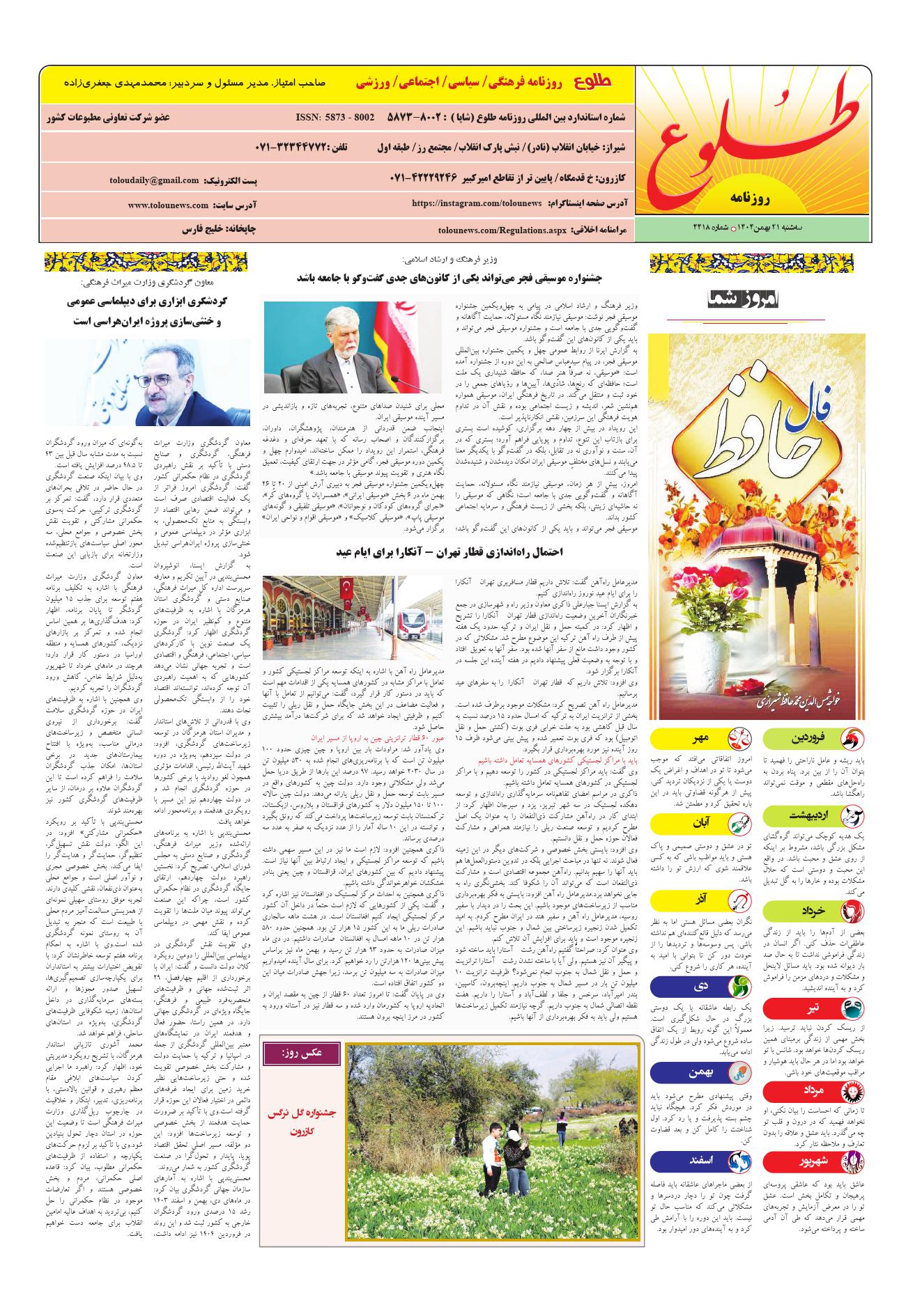 به وب سایت رسمی روزنامه طلوع خوش آمدید