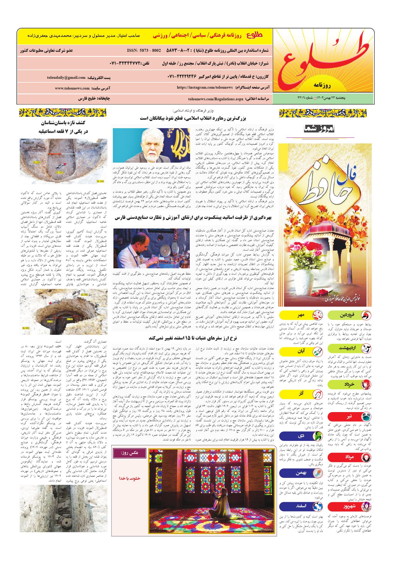 به وب سایت رسمی روزنامه طلوع خوش آمدید