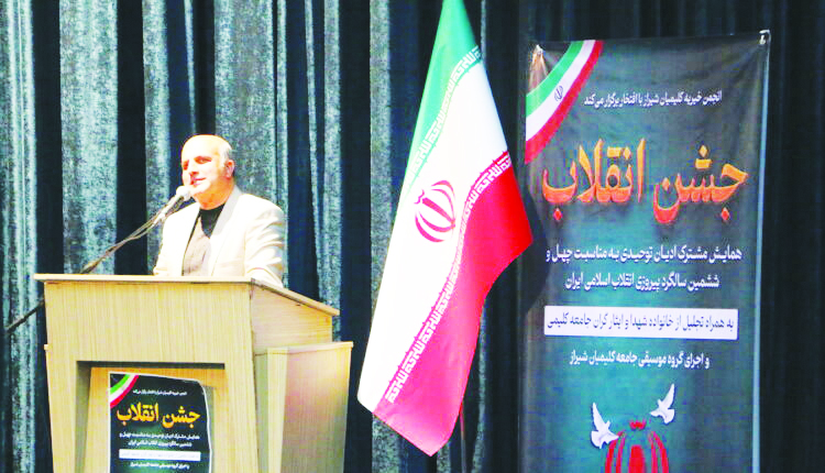 جشنی بزرگ با هنرنمایی و اجرای گروههای هنری و سخنرانی مسئولان فرهنگی و ادیان توحیدی به پاسداشت چهل و ششمین سالگرد پیروزی انقلاب اسلامی ایران در راستای تکریم خانواده شهدا و ایثارگران ادیان توحیدی استان فارس در تالار حافظ اداره کل فرهنگ و ارشاد اسلامی استان فارس، برگزار شد.