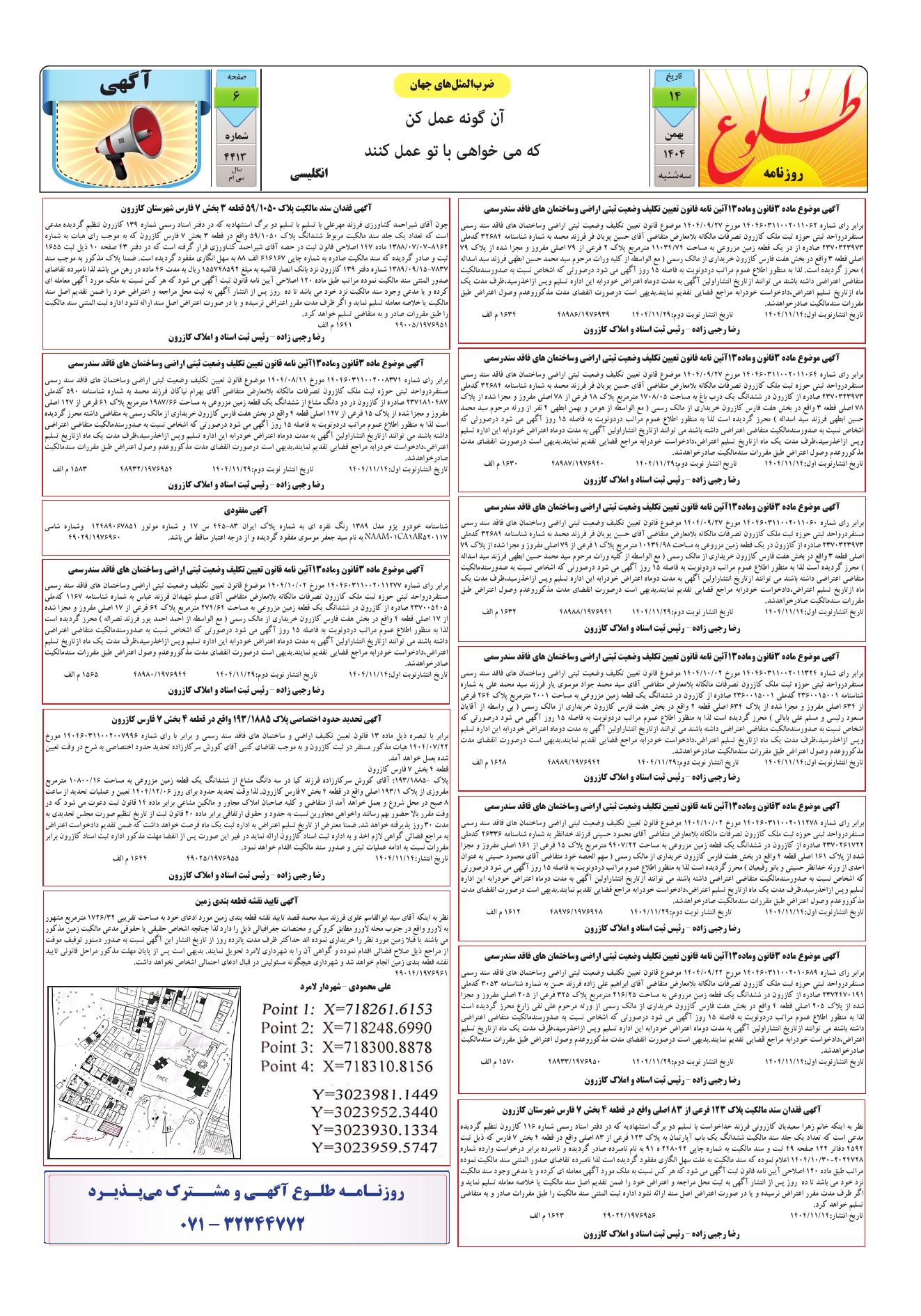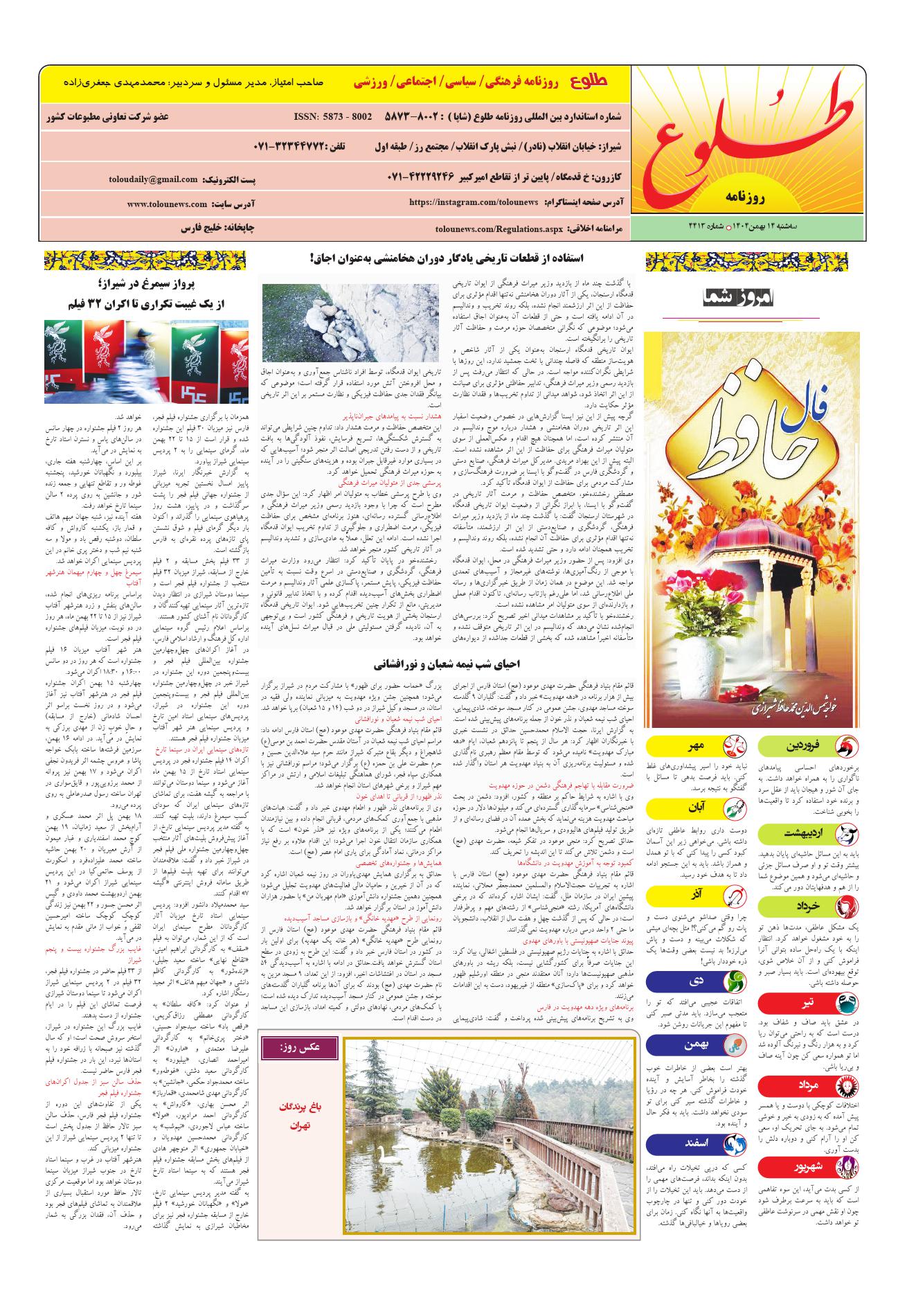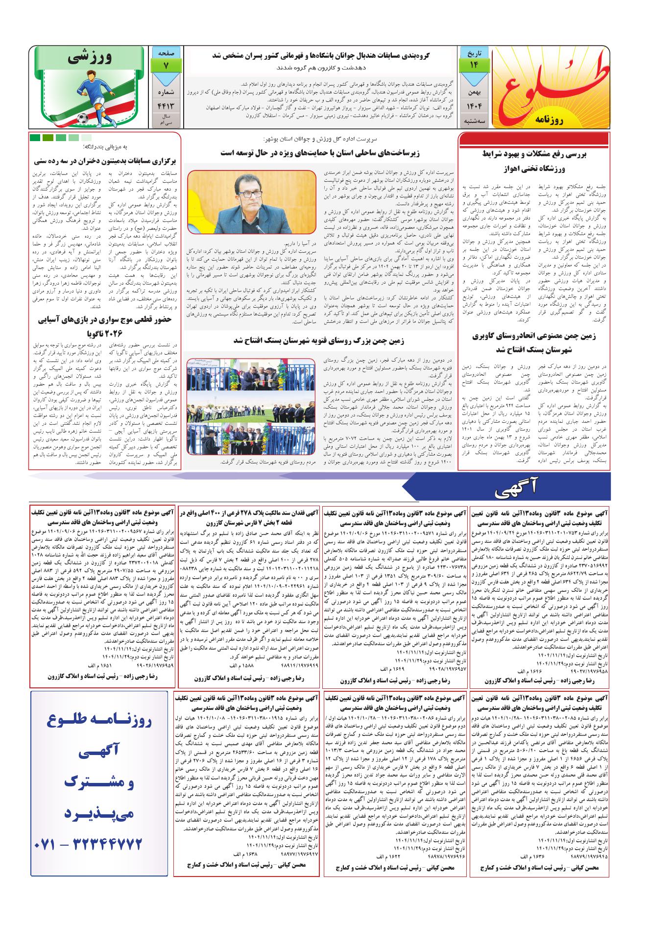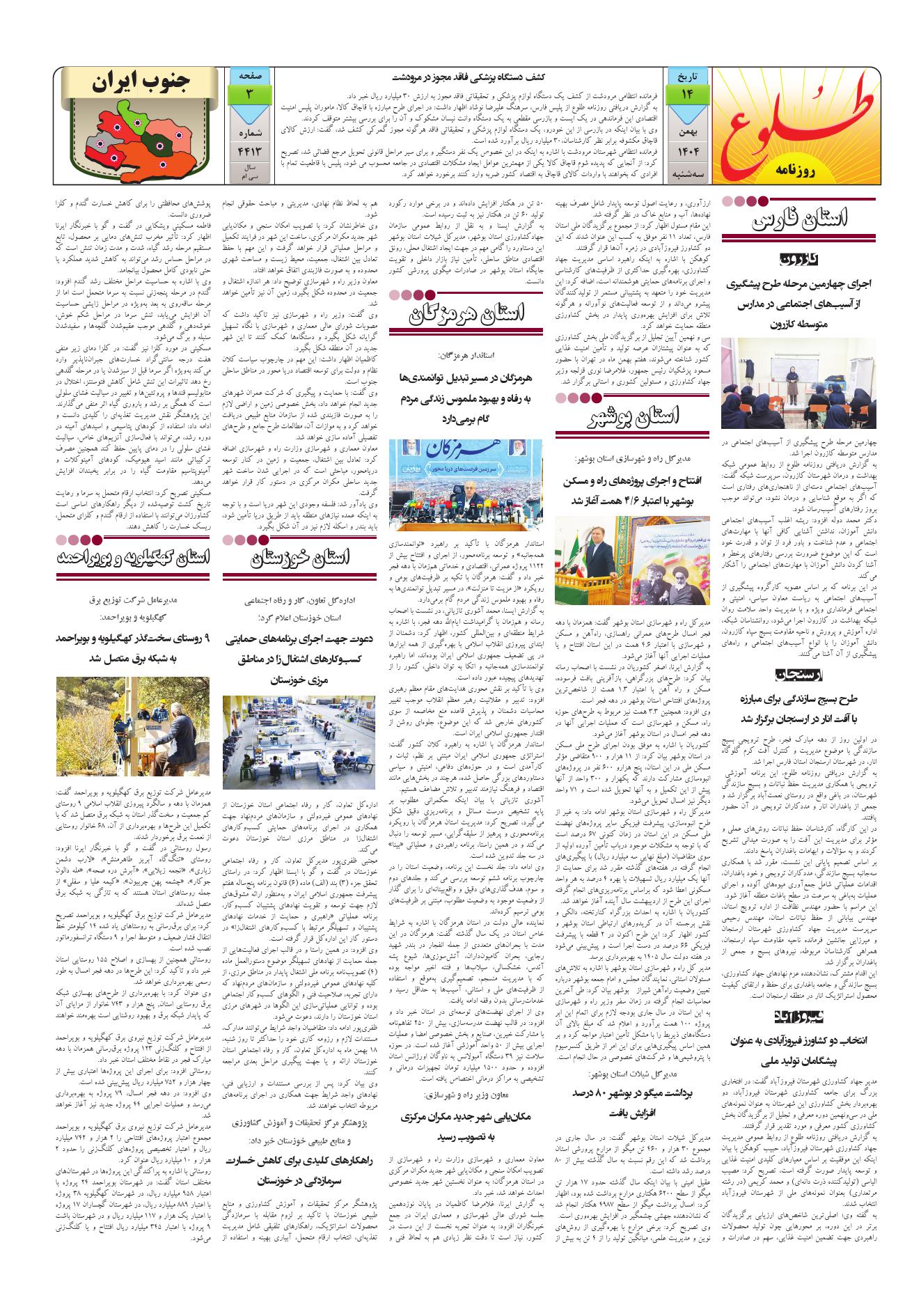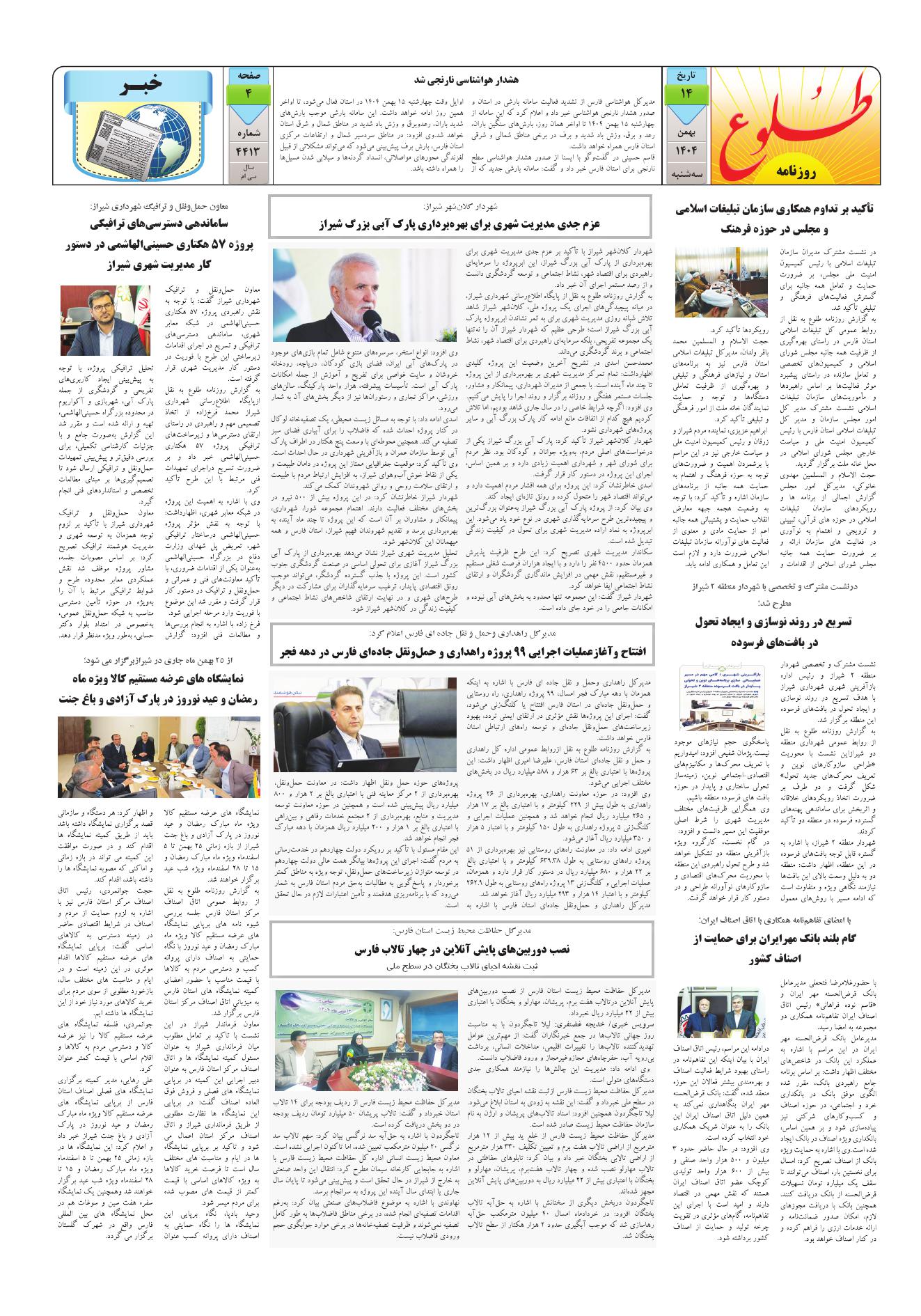 صفحات روزنامه شماره 4413 :: تاریخ سه شنبه 14 بهمن 1404